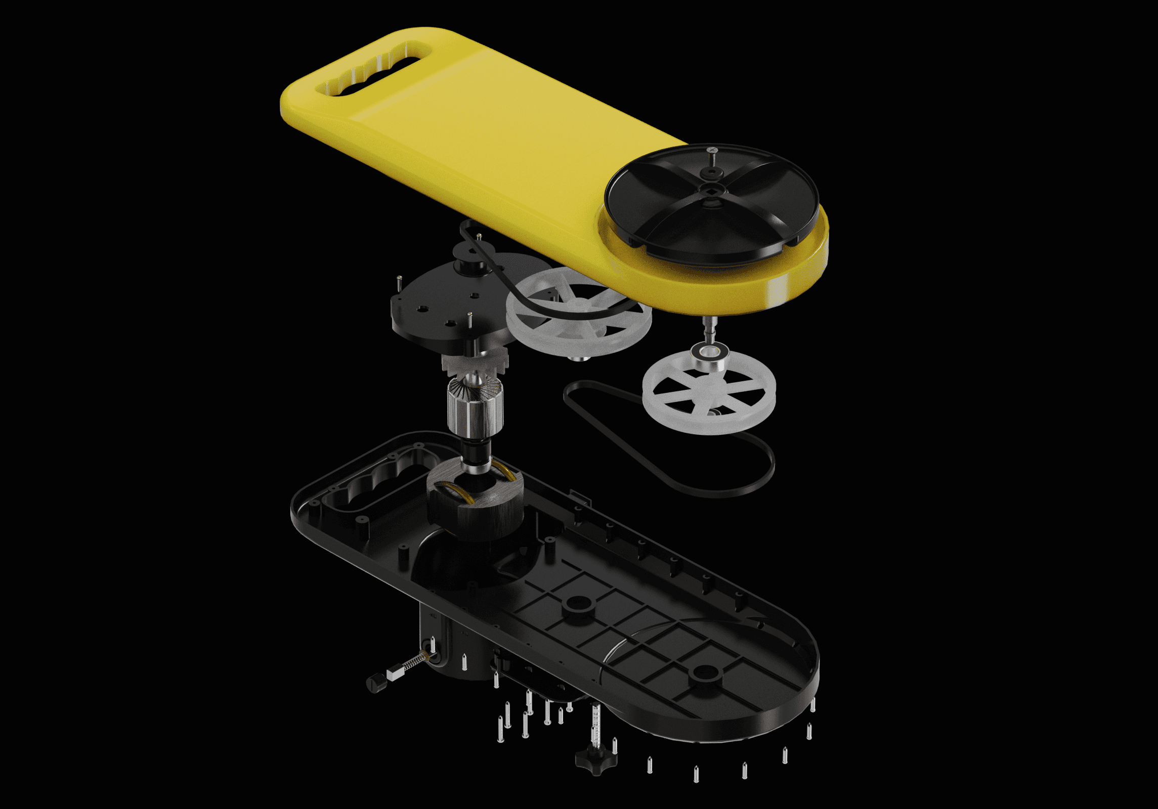 Modelled from scratch using Fusion 360, the model and animation feature the technicalities of a portable bucket washing machine.